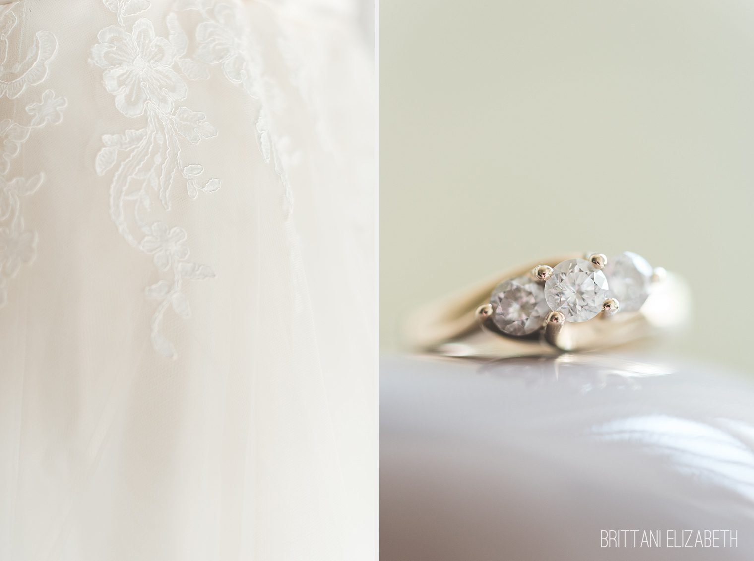 lace wedding dress yellow gold three diamond set engagement ring