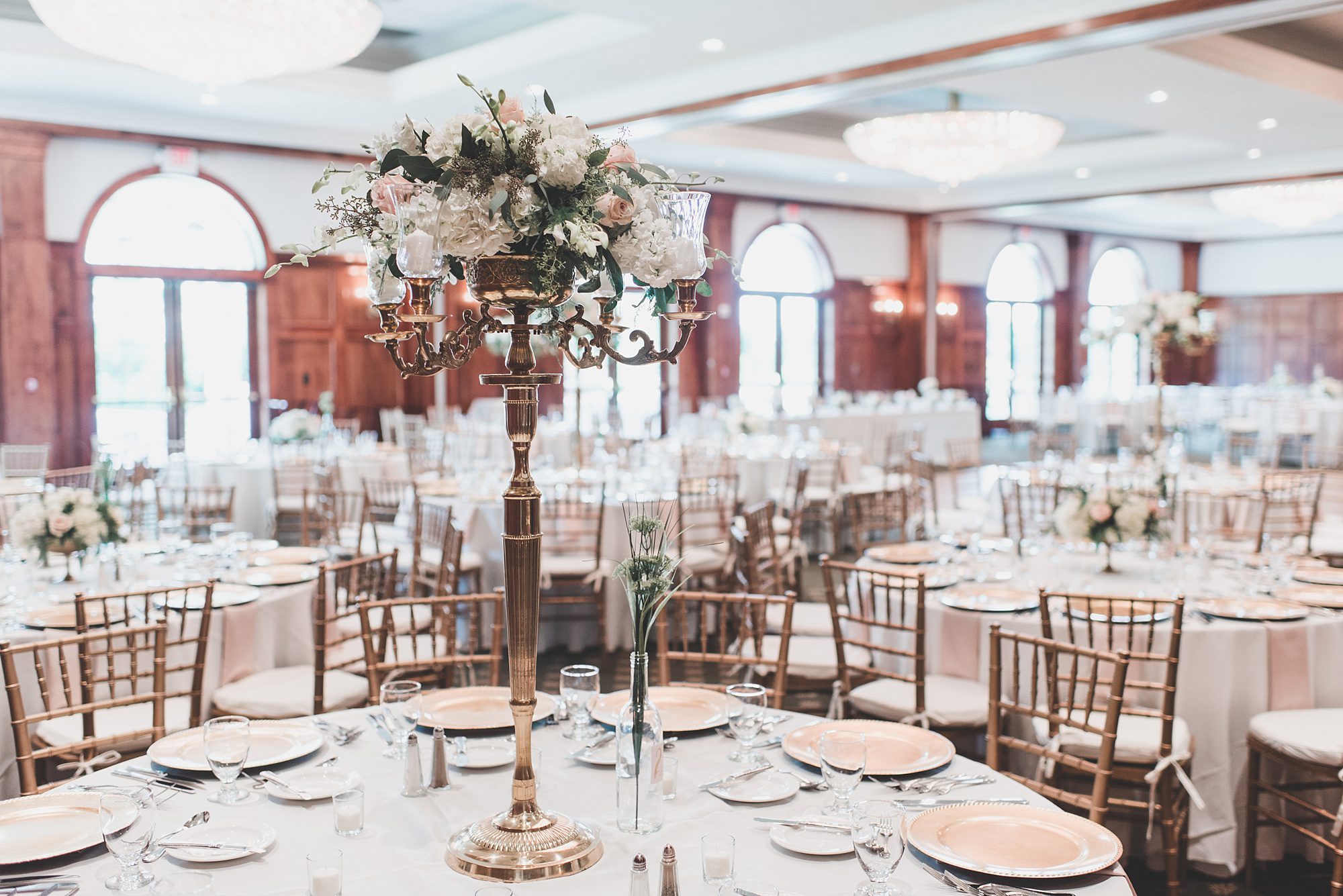 round wedding reception tables gold details